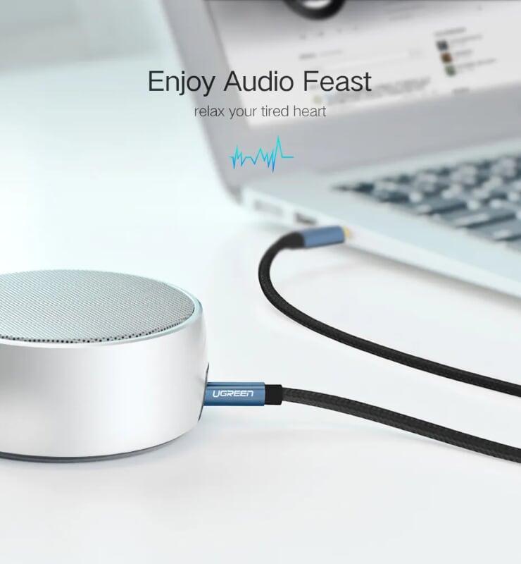UGREEN AV102 cáp chuyển jack 3.5mm Stereo sang 2 cổng hoa sen RCA. Cáp sử dụng để kết nối điện thoại, thiết bị nghe nhạc IPod, MP3 player, máy tính bảng hoặc máy tính đến