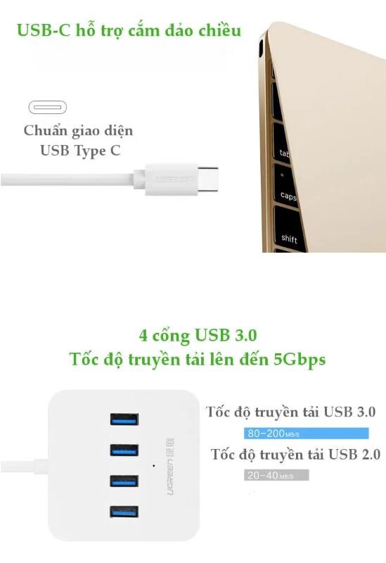 Mua tại TiktokUgreen 30316 usb c to 4 port usb 3.0 hub trăng abs 30316