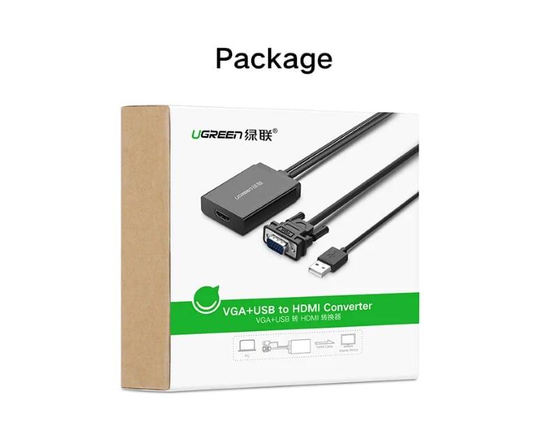 - Bộ Chuyển Đổi Ugreen HDMI Sang VGA Audio Cáp Tròn Có Nguồn Phụ 40253 giúp kết nối máy tính xách tay, Macbook, Chromebook, Rasberry Pi với giao diện HDMI để chiếu, hiển thị, màn hình