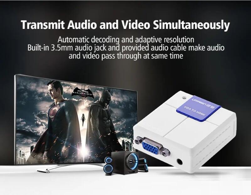 - Dây Cáp Chuyển Đổi HDMI To VGA Hỗ Trợ Nguồn Ugreen 30449 chuyển đổi tín hiệu từ chuẩn HDMI sang VGA. Tín hiệu đầu vào là chuẩn HDMI, tín hiệu đầu ra là chuẩn VGA.