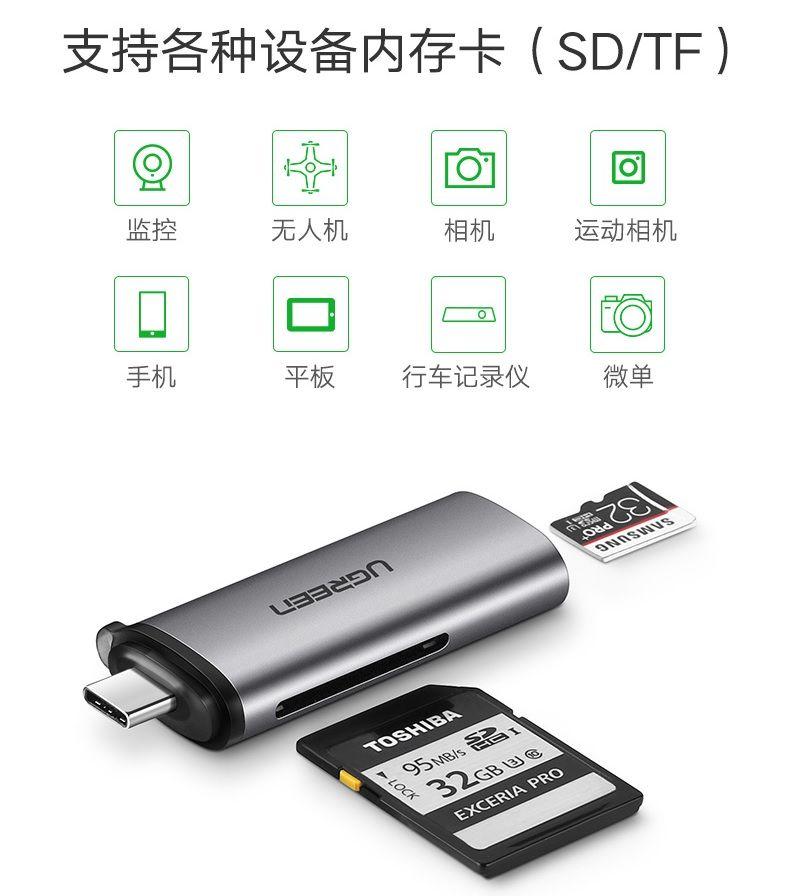 Đầu đọc thẻ SD/TF Usb Type-C Ugreen 50704