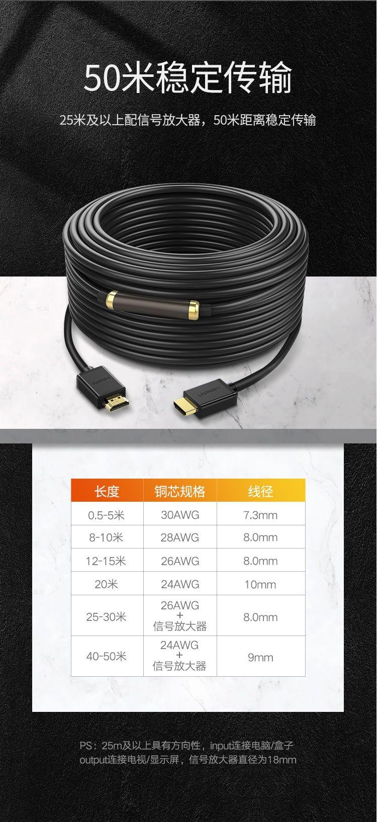 Ugreen 11106 15M Hdmi Cable 1.4 Hd101 1. Category: Signal Cables 2. Cable length: 15M 3. Features: Connect a computer, television box, disc player, digital receiver to the projector HDTV via HDMI 4. Standard structure