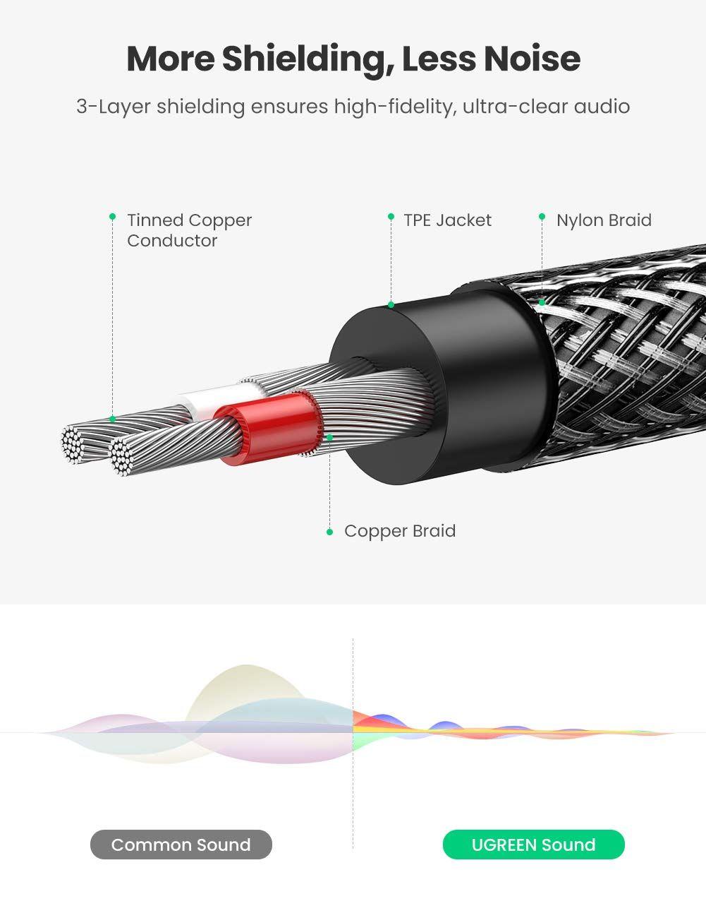 - Cáp Chuyển Đổi Ugreen 3.5mm Sang 2 RCA 10511 (1.5m) được dùng để kết nối từ điện thoại, máy tính, máy nghe nhạc… đến các thiết bị âm thanh có chuẩn RCA (hoa sen)