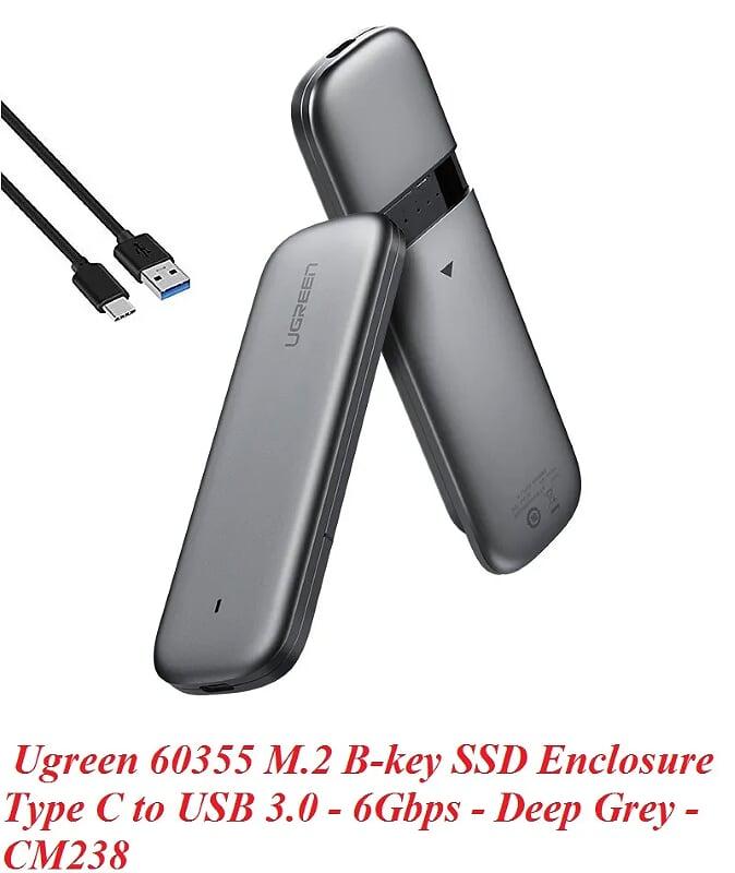 ✨Ugreen UG60355CM238TK 6Gbps M.2 B-key SSD NGFF hộp box cổng Type C hoặc USB 3.0 màu xám đen - HÀNG CHÍNH HÃNG