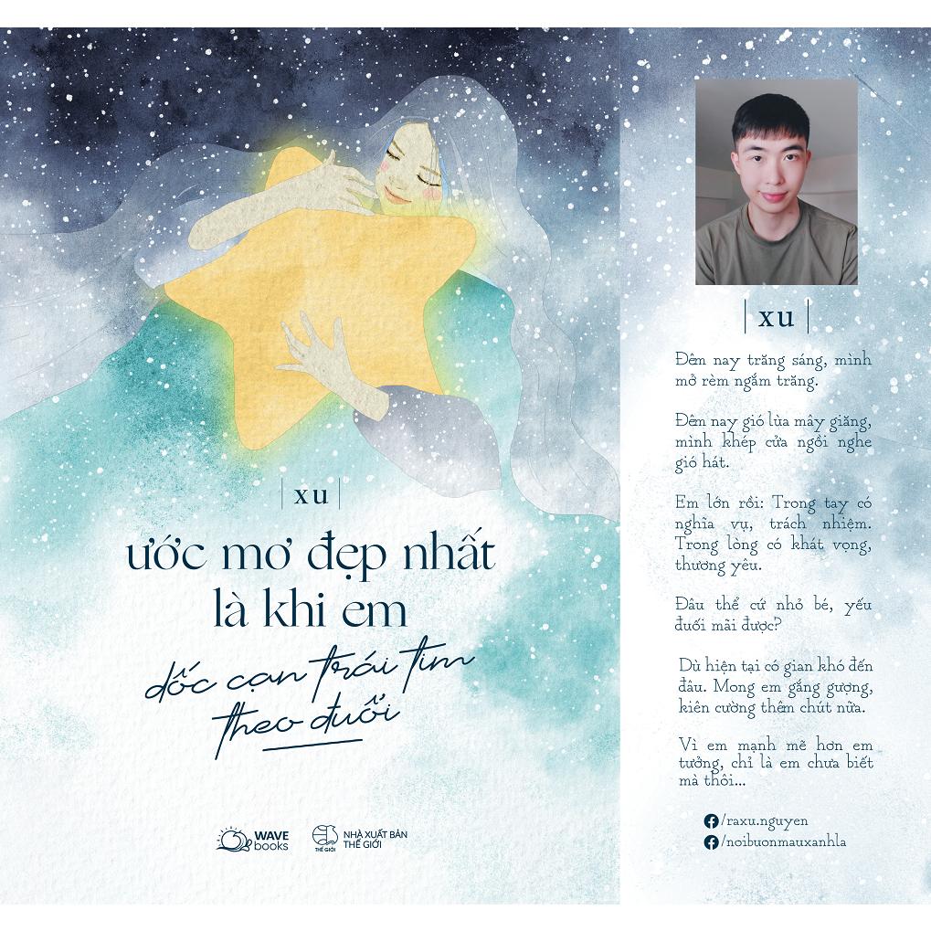 Ước mơ đẹp nhất là khi em dốc cạn trái tim theo đuổi là tập tản văn mới nhất của | Xu | - một tác giả trẻ và cũng là founder của Fanpage truyền cảm hứng với hơn 1 triệu lượt theo dõi (Fanpage: noibuonmauxanhla). Cuốn sách tựa như lời nhắn nhủ của một người anh đi trước dành cho những bạn trẻ mới chớm đôi mươi, đôi chân bỡ ngỡ, đầu óc rối bời bước vào cuộc đời để rồi tự hỏi làm thế nào sống trọn vẹn với chính mình?
