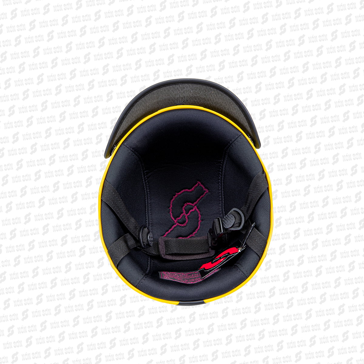 • Phần logo NÓN SƠN được gắn trên vỏ nón bảo hiểm Nón Sơn được làm từ da thật.
