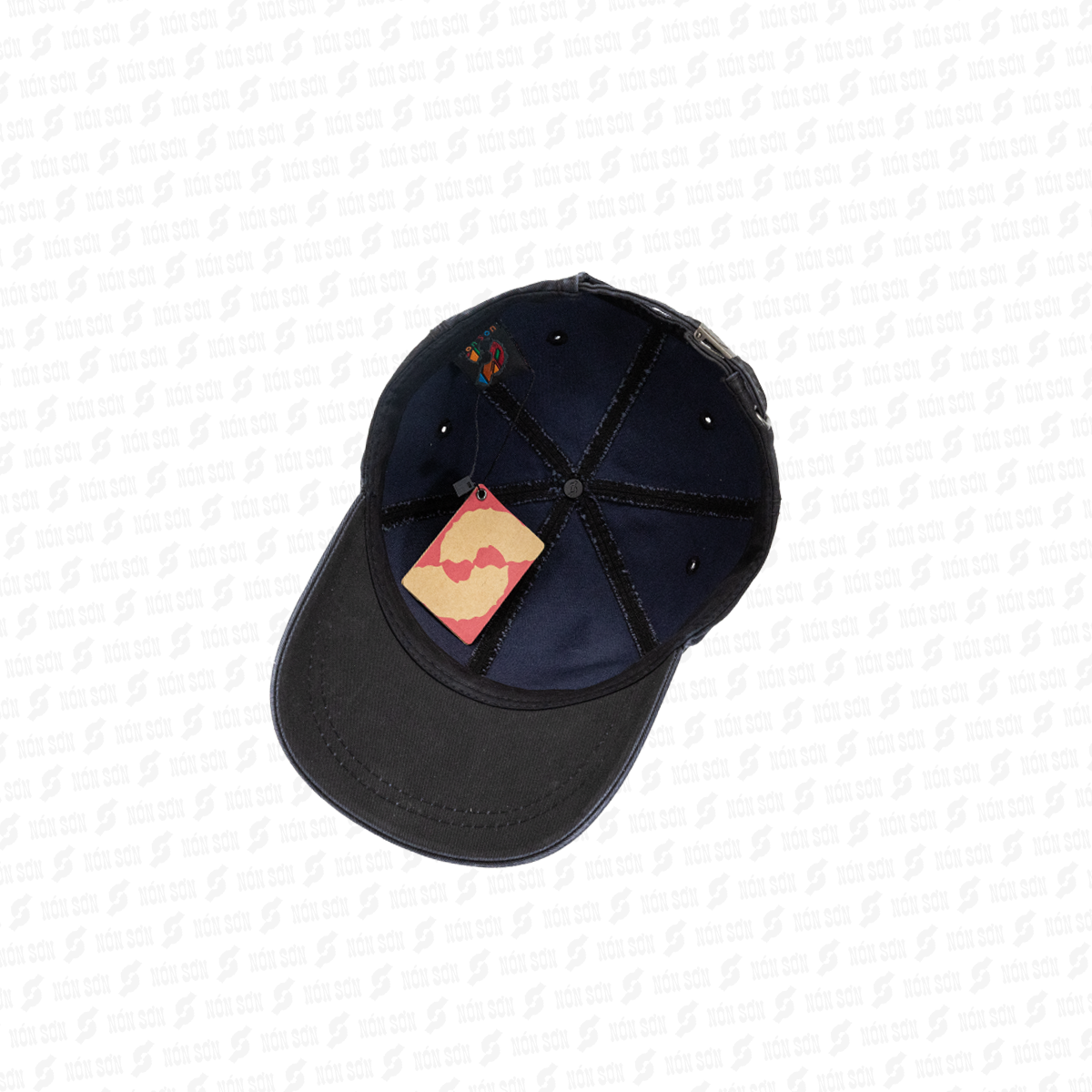 - Sử dụng kẹp phơi vào đai bên trong nón (vị trí giữa lưỡi trai), sao cho lưỡi nón hướng phía trên và dây đuôi hướng phía dưới.