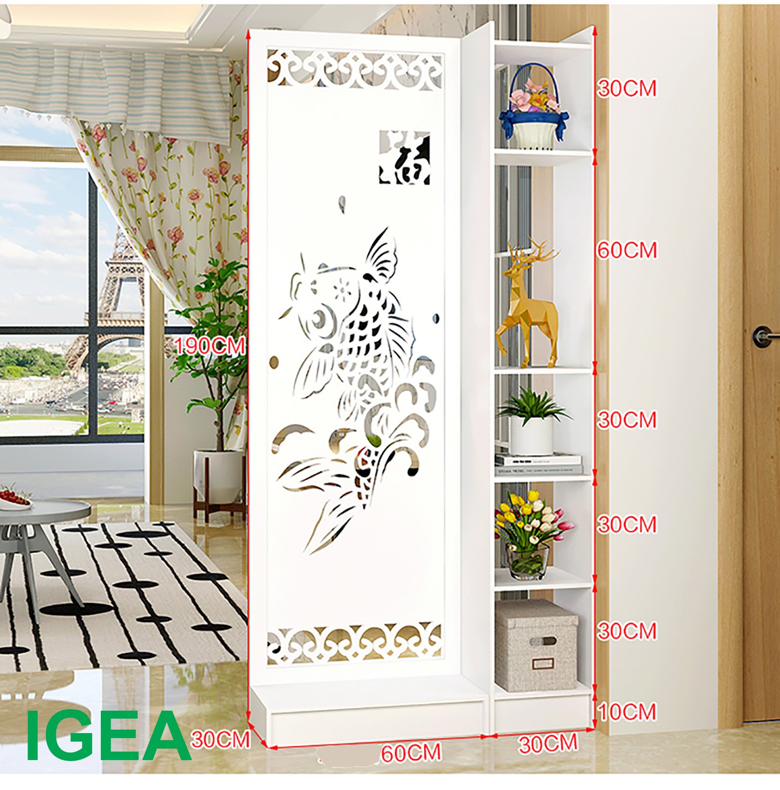 VÁCH NGĂN PHÒNG NGỦ, PHÒNG KHÁCH DI ĐỘNG NHIỀU HỌA TIẾT CHẤT LIỆU NHỰA PVC CAO CẤP TIẾT KIỆM DIỆN TÍCH TRANG TRÍ NHÀ CỬA Thông tin sản phẩm: – Kích thước: Cao 190 cm, ngang 90cm sâu 30cm - Chất liệu: NHỰA PVC chống thấm 8li, viền 16li. - Màu sắc: Màu trắng - Mô hình: Tháo lắp ráp ( có video chi tiết hướng dẫn lắp ráp) Công dụng: – Chia cắt không gian giữa các phòng nhưng không làm mất đi sự liên kết giữa các không gian. – Tiết kiệm được diện tích, tạo sự thông thoáng cho căn phòng. – Về phần kệ bạn có thể để những đồ vật trang trí hay trưng bày bộ sưu tập của mình. – Ngoài ra, trong phong thủy, tấm bình phong còn có nhiều tác dụng như hóa giải và làm chậm lại các dòng năng lượng xấu ở trong nhà, giảm bớt tính vượng của Hỏa khí trong nhà… Điểm khác biệt của sản phẩm: - Vách ngăn phòng ngủ, phòng khách, phòng thờ tiết kiệm diện tích, trang trí nhà cửa - Màu sắc vân gỗ mang lại phong cách sang trọng, cổ điển cho ngôi nhà của bạn - Mặt bàn phủ melamine, chống ẩm mốc, mối mọt chày xước. - Dễ dàng vệ sinh, không bám bụi, bám bẩn. - Tháo lắp, vận chuyển dễ dàng . - Độ bền, tính chịu lực cao, không bị cong vênh - An toàn, đảm bảo với môi trường và người dùng HUCHU Cam kết sản phẩm. - Hàng đạt chuẩn về mẫu mã.. - Chất lượng bền và đẹp. - Tuổi thọ sản phẩm cao. - Hình ảnh sản phẩm giống 100% KHÁCH HÀNG ĐƯỢC ĐỔI TRẢ . 01.Hàng bị lỗi do vận chuyển hoặc nhà sản xuất. 02.Hàng không đúng mẫu mã ,chất lượng . KHÁCH HÀNG KHÔNG ĐỔI TRẢ KHI . 01.Khách hàng chọn sai mẫu mã sản phẩm ,kích thước ,màu sắc."KHÁCH HÀNG CÂN NHẮC KHI CHỌN SẢN PHẨM" 02.Gửi lại hàng không đúng sản phẩm .