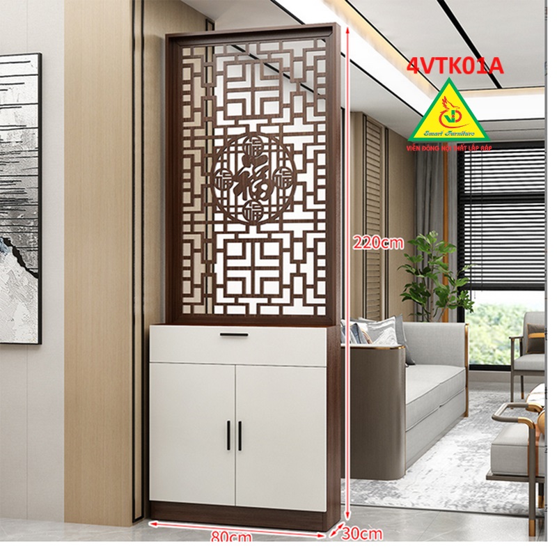 Vách ngăn còn có tủ giúp lưu trữ những vật dụng cá nhân của gia chủ , tận dụng được không gian sống tốt hơn. Sản phẩm lắp ráp dễ dàng di chuyển khi cần thiết.