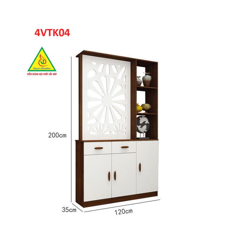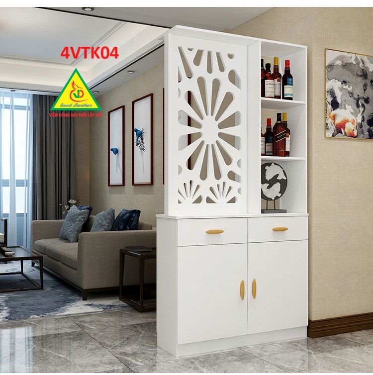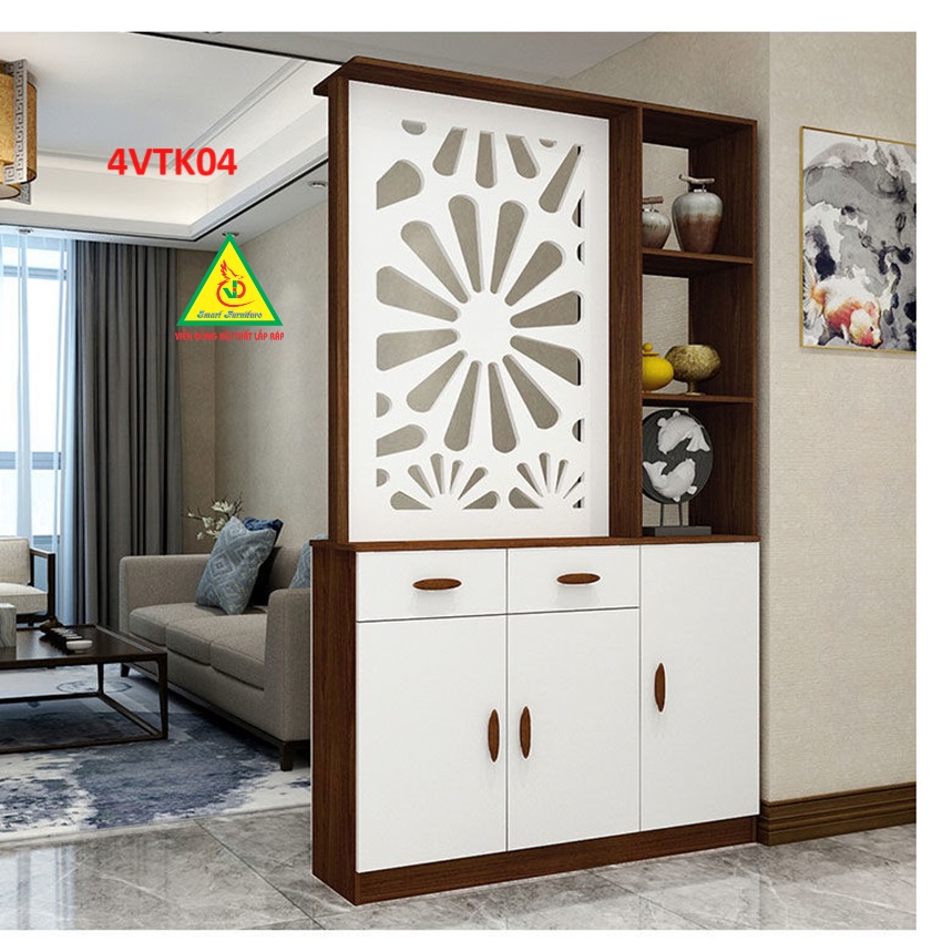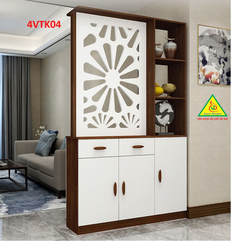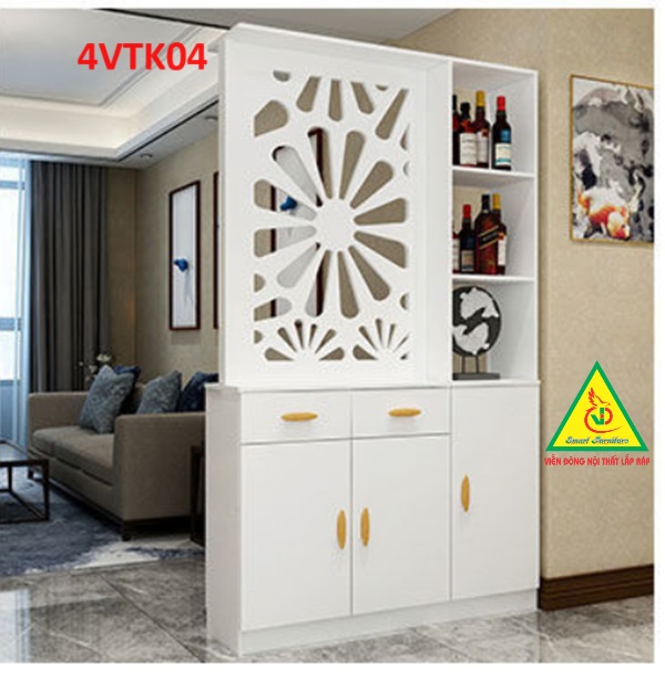 Vách ngăn còn có tủ giúp lưu trữ những vật dụng cá nhân của gia chủ , tận dụng được không gian sống tốt hơn. Sản phẩm lắp ráp dễ dàng di chuyển khi cần thiết.