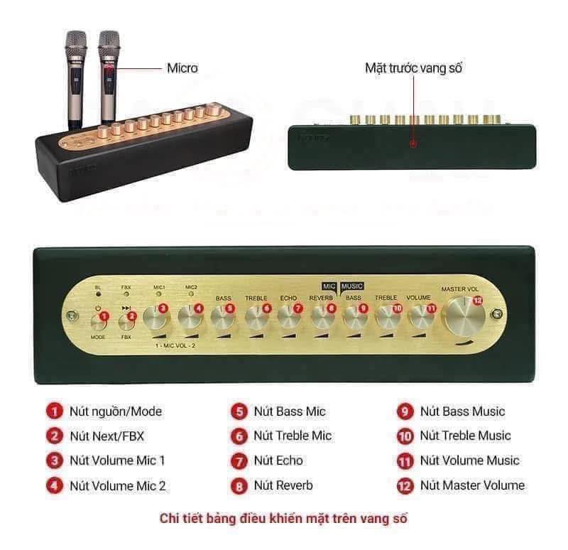 Vang cơ chống hú JA FX-999S • Với thiết kế các cần chỉnh ẩn sâu bên trong hạn chế tối đa tình trạng sai lệnh cần chỉnh vô ý, đảm bảo độ hoàn hảo cho âm thanh giải trí của bạn. • VANG CƠ JA FX-999S Chính Hãng, cung cấp - 3 nhóm Micro với 4 ngõ vào, có thể kết hợp với nhiều Micro cùng lúc tạo nên không khí Karaoke sôi động tại nhà bạn. - Đặc điểm sản phẩm Vang cơ JA FX-999S Chính Hãng • Các nút điều chỉnh chắc chắn, vừa tay. JA FX-999S là sản phẩm vang cơ karaoke chất lượng cao cực kỳ phù hợp cho dàn âm thanh karaoke gia đình hoặc dàn loa karaoke vip, • Sản phẩm có thiết kế đẹp mắt. Toàn bộ vỏ ngoài của Vang cơ JA FX-999S được làm bằng kim loại cao cấp được sơn lớp chống gỉ. Bảo vệ linh kiện điện tử bên trong đồng thời tránh va đập mạnh. Giúp sản phẩm có tuổi thọ lâu dài hơn so với các sản phẩm vang cơ khác • Phía bên phải sản phẩm được trang bị hệ thống các nút điều chỉnh chuyên nghiệp. 3 nút điều chỉnh âm lượng, tiếng vang cùng âm nhạc được thiết kế to, chắc chắn, nổi bật. Bạn có thể dễ đang điều chỉnh các tính năng này ngay lập tức.