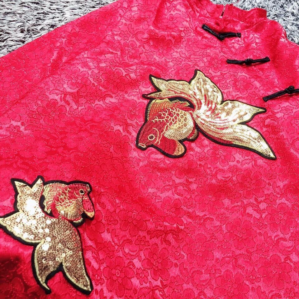 ✨váy đầm suông thêu cổ tàu cao cấp, đầm đỏ mặc tết HB02