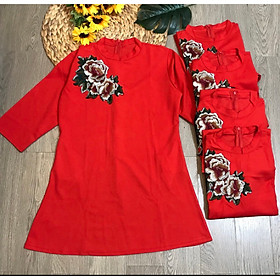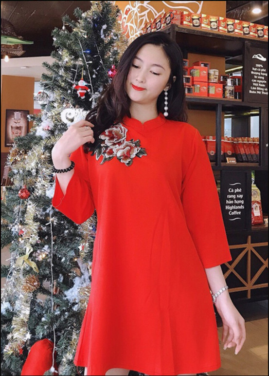 ✨Váy đỏ thêu hoa dáng suông kiểu áo dài cách tân sang trọng thời trang xinh HB03