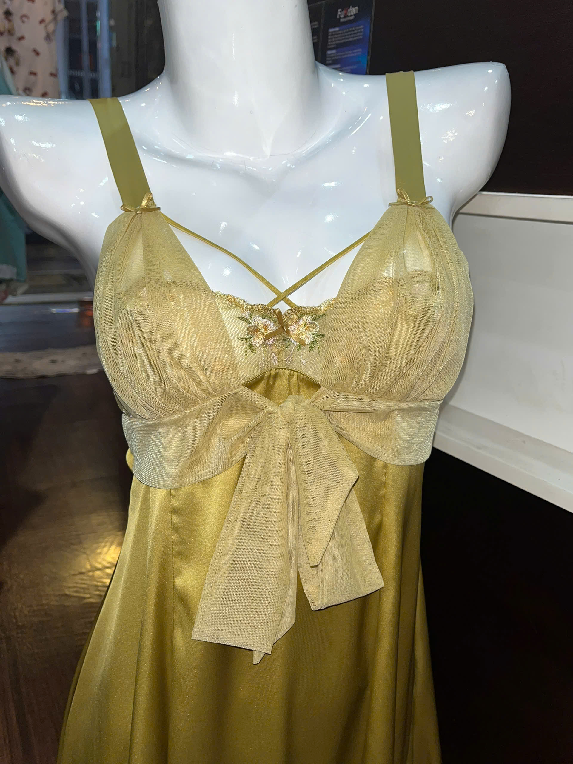 Thương hiệu: Sanny House Tên sản phẩm: Váy ngủ Chất liệu: lụa cao cấp mềm mịn, co giãn, thấm hút tốt Kiểu dáng: gợi cảm, trẻ trung, hiện đại Màu: vàng