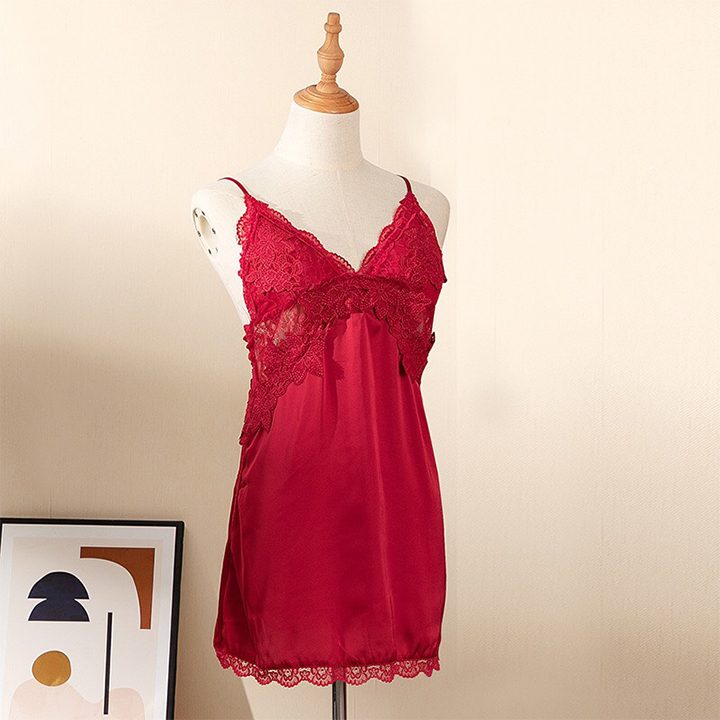 Váy ngủ lụa sexy hai dây phối ren hông gợi cảm