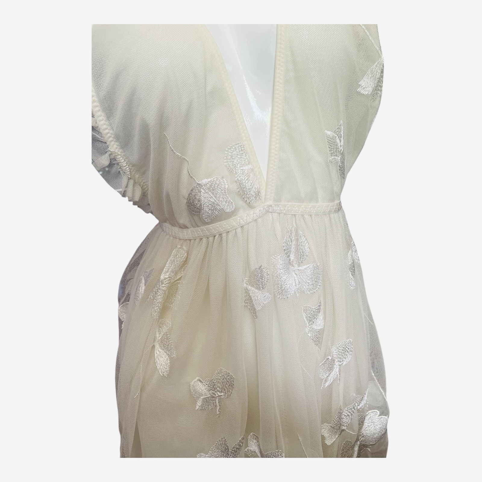 Thiết kế nhẹ nhàng xinh xắn, phần ngực bọc chun co giãn ôm sát khiến bạn cảm thấy vô cùng thoải mái khi mặc Voan mỏng trong mờ để lộ cơ thể sau lớp voan