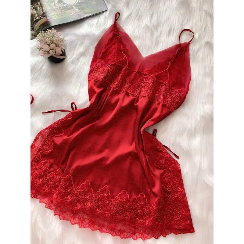 ✨Váy Ngủ S417 Lụa Phi Viền Ren Lưới Hoa Không Mút Kèm Chip Đơn Giản