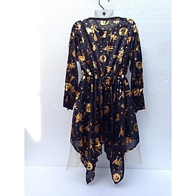Mua tại TiktokVáy phù thủy kèm mũ hoá trang halloween size m : bé từ 9-14kg Size L : 13-20kg Bộ sản phẩm gồm váy liền thân và mũ Chất liệu vải phi lụa dày mềm, mượt, mịn. In nhũ chìm nhấp nhánh trên nền vải đen, tạo sự huyền bí cho chiếc váy phù thủy.