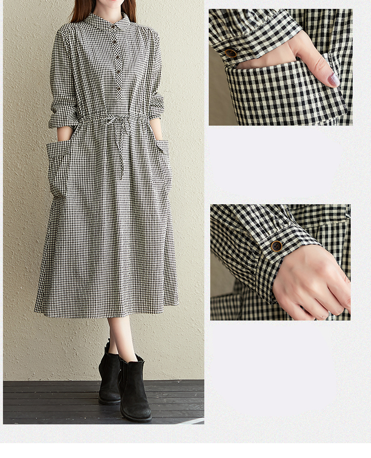 ✨Váy sơ mi dáng dài thắt eo – Đầm nữ form suông vintage kẻ caro phong cách công sở Haint Boutique Da187