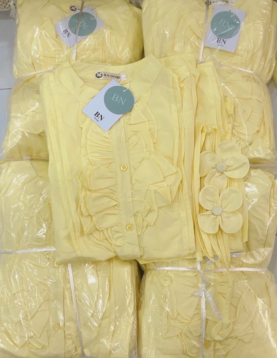 Váy sơ mi vàng bèo ngực đai hoa-Đầm nữ xinh Hình thật shop chụp cận chất và màu ( hình cuối ) Shop về 2 size S và M Sản phẩm này là tài sản