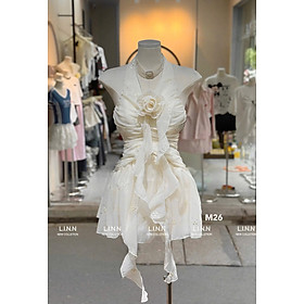 Váy thiết kế thêu hoa bèo ngực phối tay tơ bồng Váy dự tiệc đơn giản bao xinh nổi bật mà ko sợ lấn áp cô dâu đây rồi Shop về sẵn 2 size S