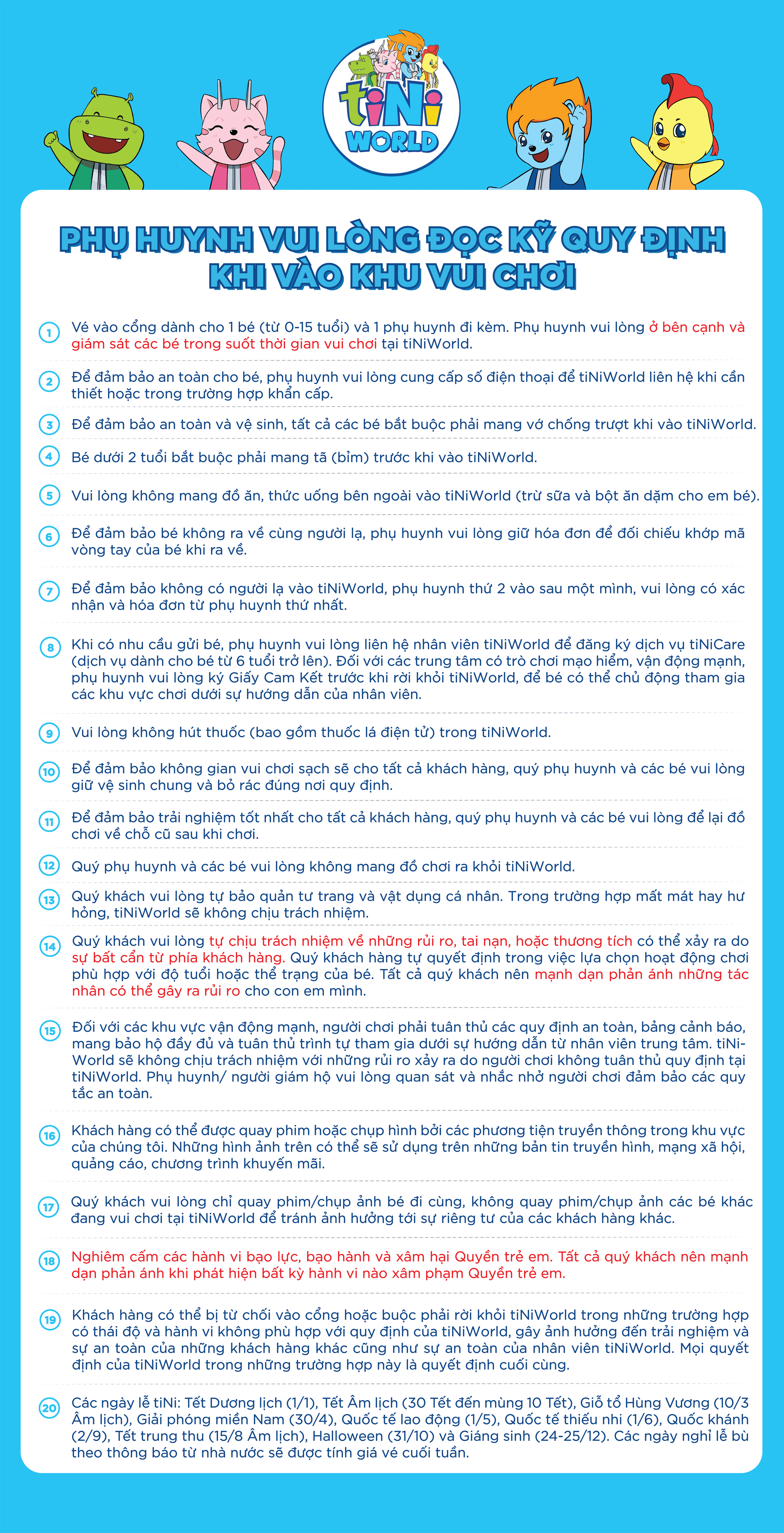✨Vé cổng điện tử tiNiWorld STANDARD CUỐI TUẦN/LỄ áp dụng tại các trung tâm tiNiWorld có giá vé vào cổng 120.000 VNĐ