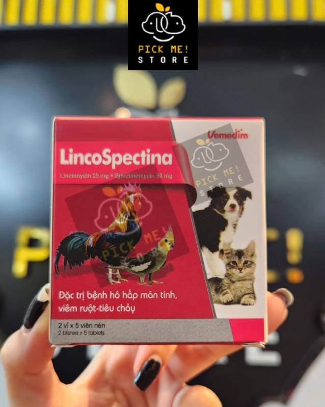 Vemedim LincoSpectina thuốc viên đặc trị bệnh hô hấp mãn tính, viêm ruột, tiêu chảy gà chim chó mèo