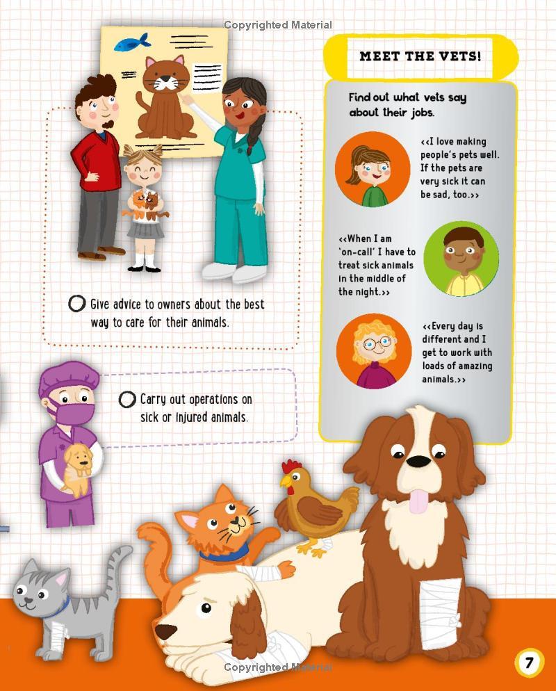 Complete simple tasks to get real, hands-on experience while you explore all the different kinds of vet jobs and learn how to help animals stay healthy. Can you spot the poorly lion in the wildlife park? Or tell when a dog is happy or sad? Or even discover how to give a turtle a bath? Look inside to find out!