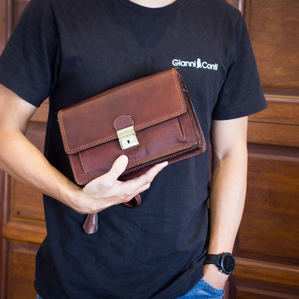 ✨Ví Da Nam cầm tay Gianni Conti Italy 912132DBR - Nâu