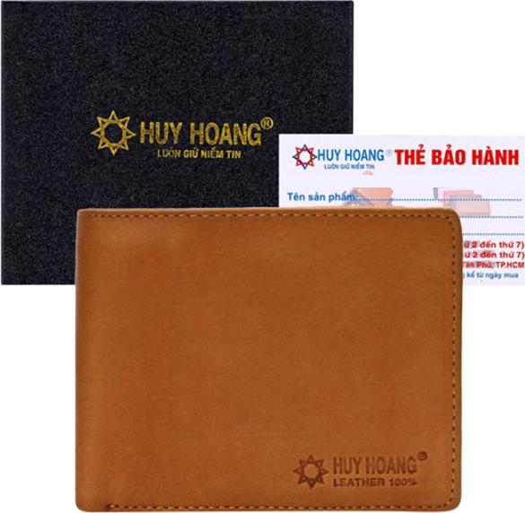 - Ví nam Huy Hoàng được làm bằng chất liệu da bò cao cấp tạo kiểu dáng lạ mắt, sang trọng. Đường may khéo léo, phong cách tinh tế, lịch lãm.