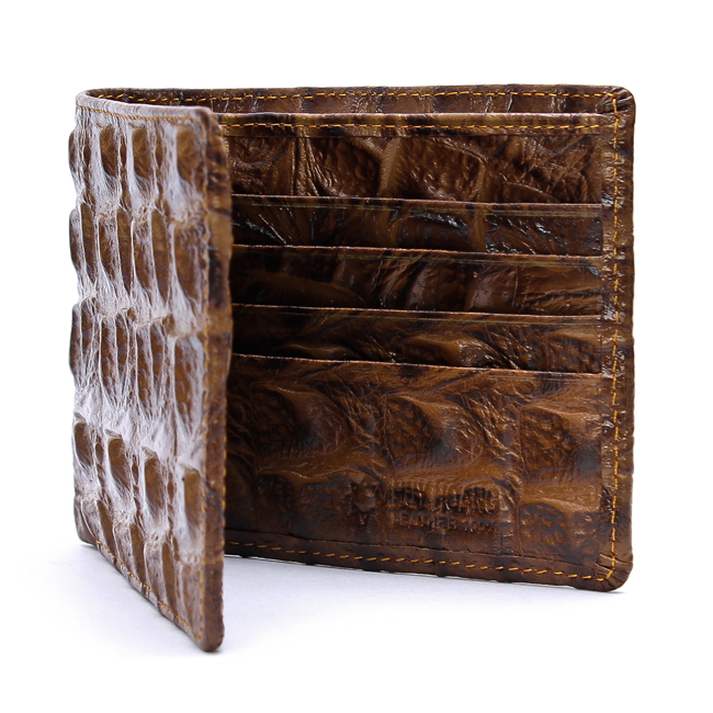 Ví/Bóp nam Huy Hoàng da bò vân cá sấu màu nâu 2118