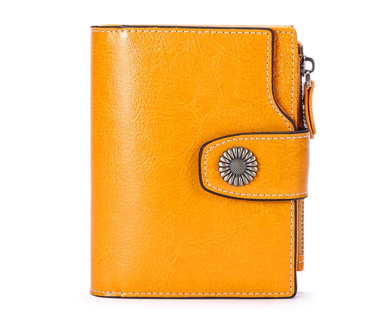 + CHI TIẾT - 100% da bò tự nhiên - Chất liệu: Da bò Pebbled mềm mại - Màu da: Vàng cam - Kiểu dáng: Đứng – Gập 2 - Khóa kéo: Không - Kích