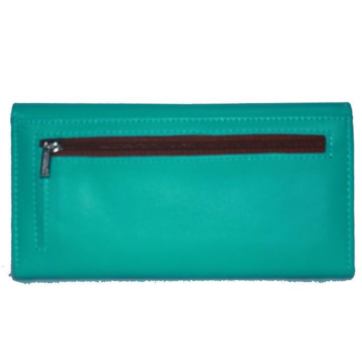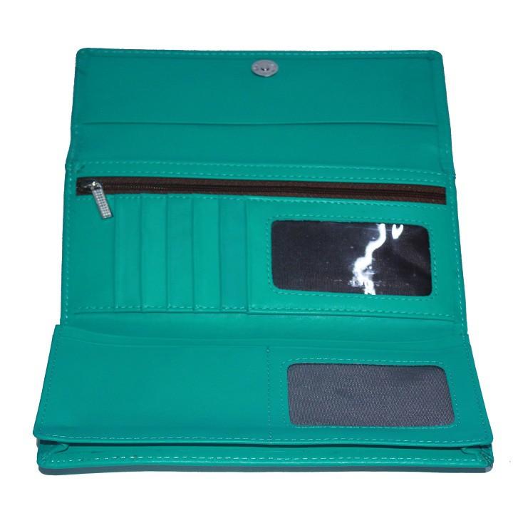 Ví/Bóp nữ da bò Huy Hoàng 3 gấp lửng màu xanh 3168