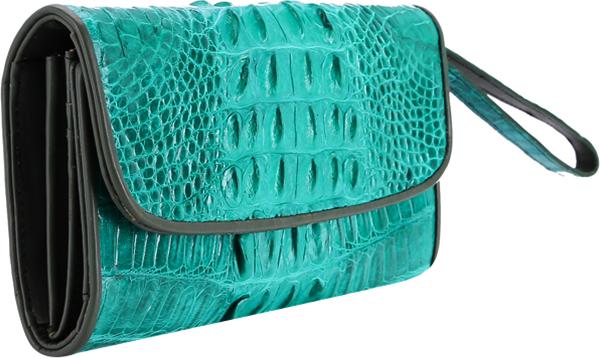 ✨Ví Nữ Da Cá Sấu 3 Gấp Gai Huy Hoàng HT3287 (19 x 10.5 cm) - Xanh Lá