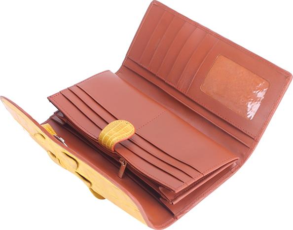 Ví/Bóp nữ da bò Huy Hoàng vân cá sấu lớn 3 gấp màu nâu đỏ 3169
