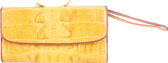 ✨Ví Nữ Da Cá Sấu 3 Gấp Gai Huy Hoàng HT3298 (19 x 10.5 cm) - Vàng Nghệ