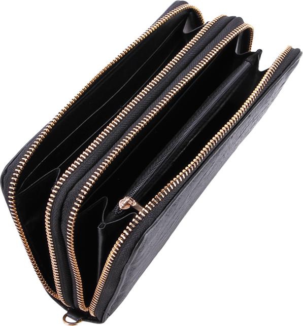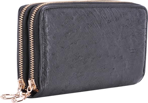 ✨Ví Nữ Da Đà Điểu Khóa Huy Hoàng HT3440 (11 x 22 cm) - Đen