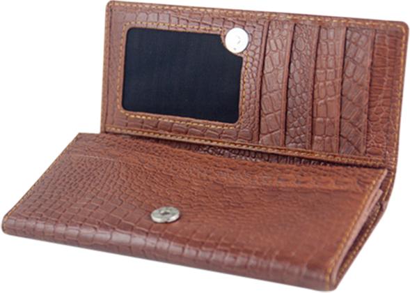 Ví/Bóp nữ da bò Huy Hoàng vân cá sấu lớn 3 gấp màu nâu đỏ 3154