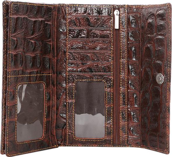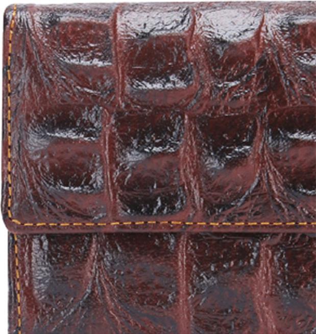 Ví/Bóp nữ da bò Huy Hoàng vân cá sấu lớn 3 gấp màu nâu đỏ 3169