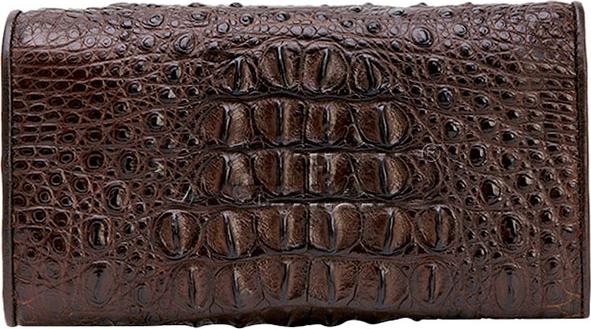 Ví/Bóp nữ da bò vân cá sấu Huy Hoàng 2 gấp màu nâu 3117