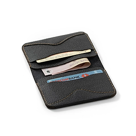 CARD HOLDER HANDMADE 2 - Size : 11 x 8 x 2cm ( D x C x R ) vừa giấy tờ cũ - Chất liệu : da bò Alran bên trong lót da bò