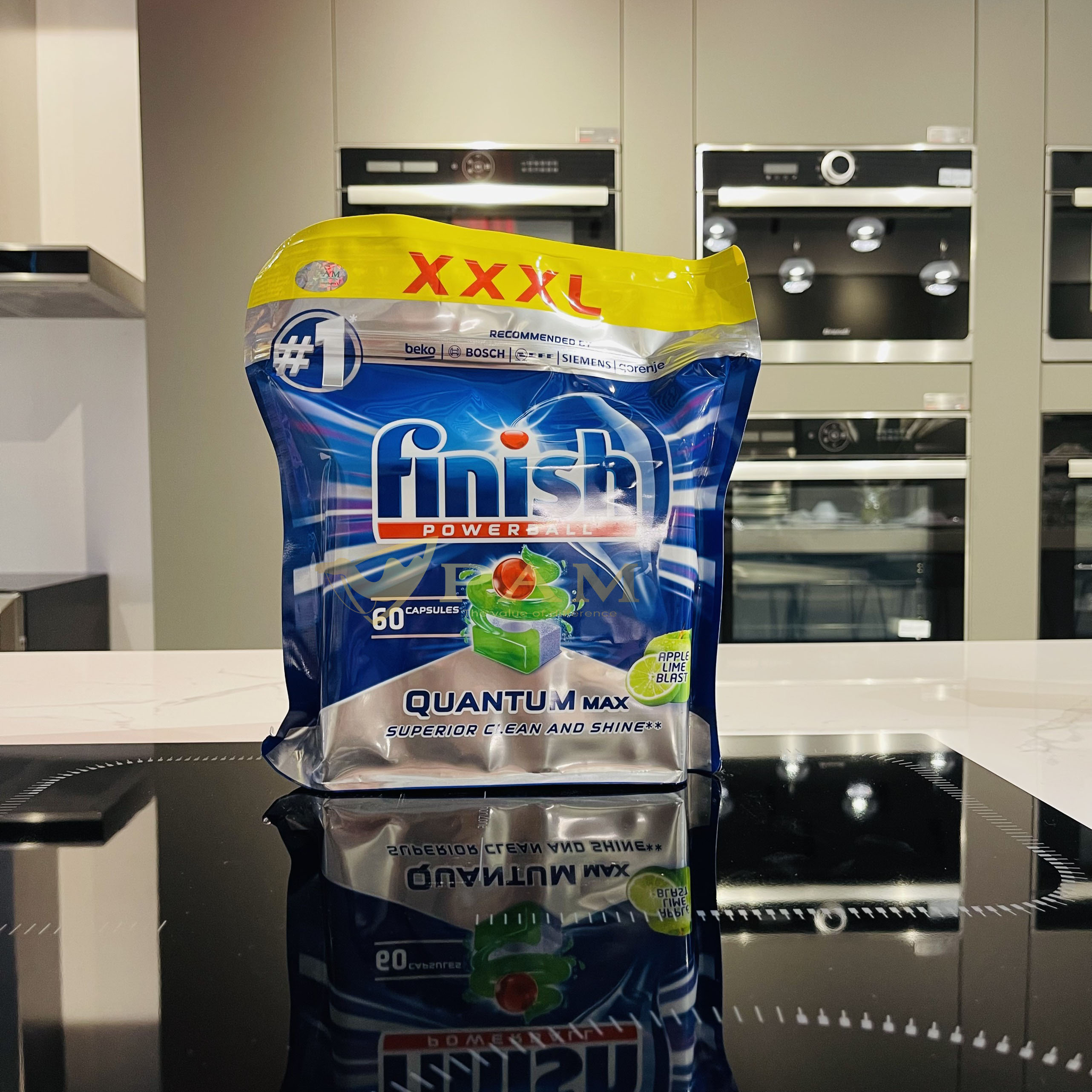 VIÊN RỬA BÁT FINISH QUANTUM MAX LÀ VIÊN RỬA BÁT CAO CẤP NHẤT HIỆN NAY VỨI 14 CHỨC NĂNG TRONG 1 VIÊN Túi 60 viên rửa chén Finish Quantum Max Dishwasher Tablets (là