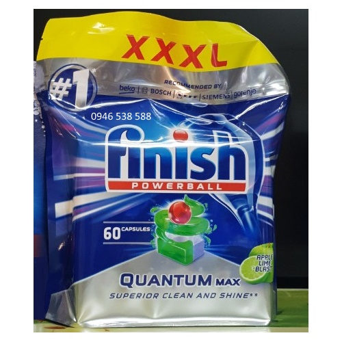 - Finish là thương hiệu rửa chén đĩa tự động số 1 Thế giới (được giới thiệu bởi hầu hết các thương hiệu máy rửa chén trên toàn Thế giới) Có thể bạn tin rằng mình đang sở hữu máy rửa chén tốt nhất với khả năng làm sạch một khối lượng chén đĩa khổng lồ, nhưng bạn không nhận ra rằng công suất hoạt động của nó đang giảm dần theo thời gian. Việc sử dụng chất rửa kém chất lượng cũng là một nguyên nhân chính dẫn đến chu trình rửa của máy bị gián đoạn, không hiệu quả, gây mùi hôi và làm giảm tuổi thọ của máy rửa chén. Viên rửa chén Finish Quantum Max Dishwasher Tablets là sự kết hợp của công thức enzyme đặc biệt tiên tiến với các thành phần độc đáo và công nghệ Nano Protector cùng nhiều tính năng ưu việt, có sức mạnh tẩy sạch chất dầu mỡ và thức ăn thừa bám trên chén đĩa kèm theo khả năng diệt khuẩn, làm bóng chén đĩa, các đồ sành sứ, thủy tinh, inox và các dụng cụ nhà bếp và đem lại hương thơm tươi mát dài lâu.