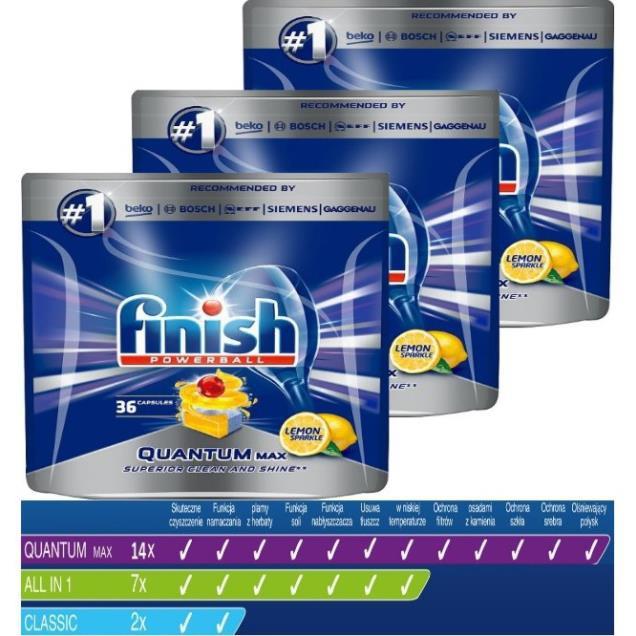 combo 2 Túi 36 viên rửa chén Finish Quantum Max Dishwasher Tablets Lemon (là viên rửa chén cao cấp chuyên dùng cho máy rửa chén). Xuất xứ: Châu Âu (EU) - Trọng lượng:627g x 2
