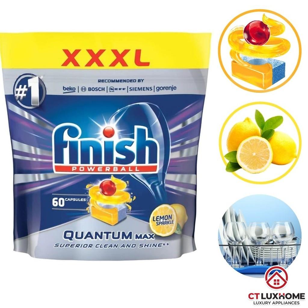 Viên nang dành cho máy rửa chén Finish Quantum ActivBlu 60 miếng Quả chanh - Sự sạch sẽ tốt nhất của chúng tôi - tỏa sáng hoàn hảo sau khi rửa - viên nang ba