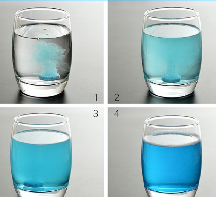 (Sự khác biệt rõ rệt trước và sau khi sử dụng) (Viên sủi nồng độ cao, không để lại cặn) Thành phần chính là Natri bicarbonate Citric Acid Surfactant, khi gặp nước sẽ xảy ra