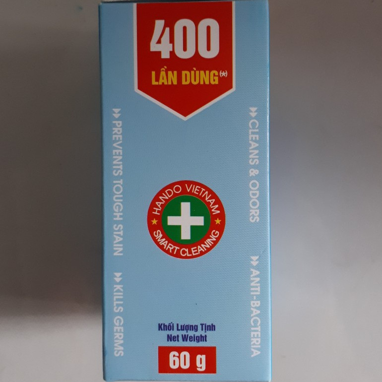Thông tin sản phẩmTên sản phẩm : Viên tẩy toilet sạch thơm thơm sạch Hando 400 lần xả nướcCông dụng : Tự động tẩy sạch bồn toilet, khử mùi hôi, lưu lại mùi hương dễ chịu sau khi xả nước, khi hòa tan...