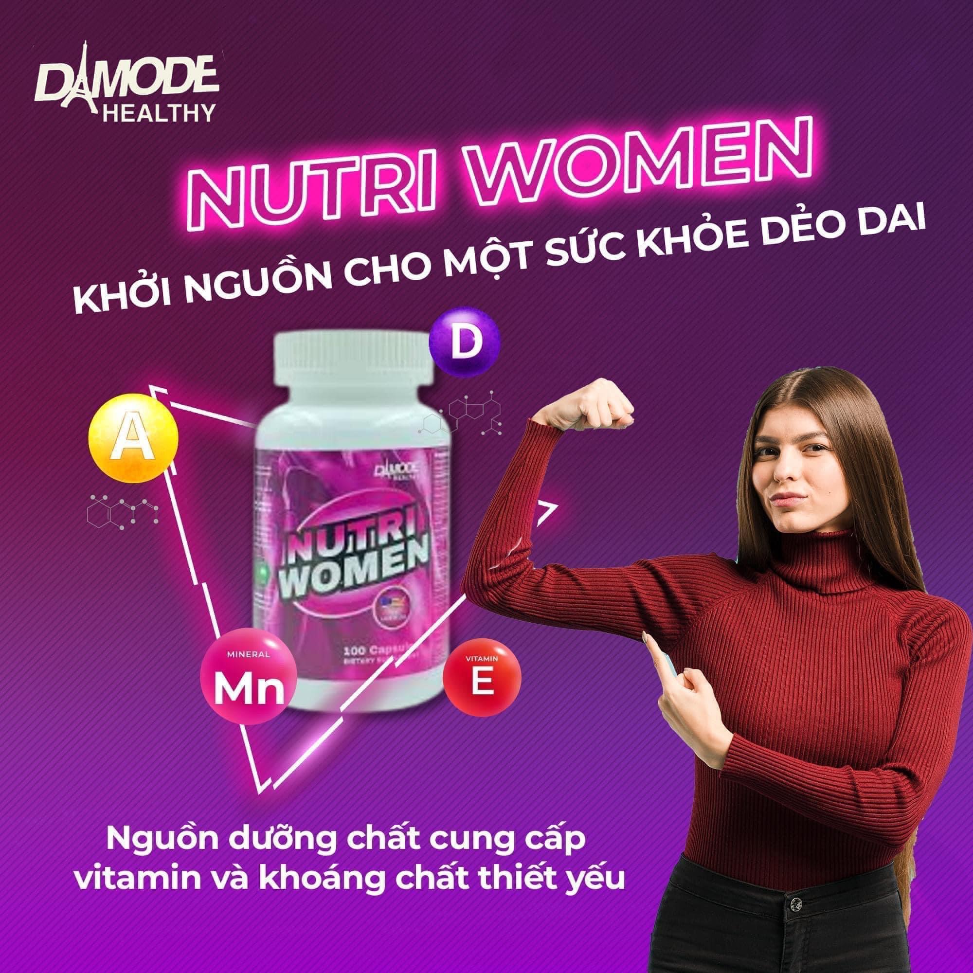 Một sản phẩm Nutri Women từ Damode Healthcare sẽ bổ sung cho bạn đầy đủ vitamin và khoáng chất thiết yếu gồm các hoạt chất sau: