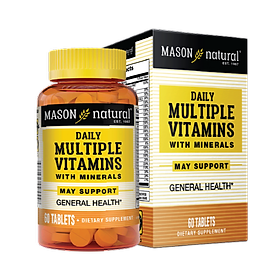 Viên vitamin và khoáng tổng hợp cho bầu Mason Natural Daily Multiple Vitamins With Minerals 60 viên ĐẶC ĐIỂM NỔI BẬT: - Là sản phẩm của thương hiệu Mason nổi tiếng nước Mỹ, đây là