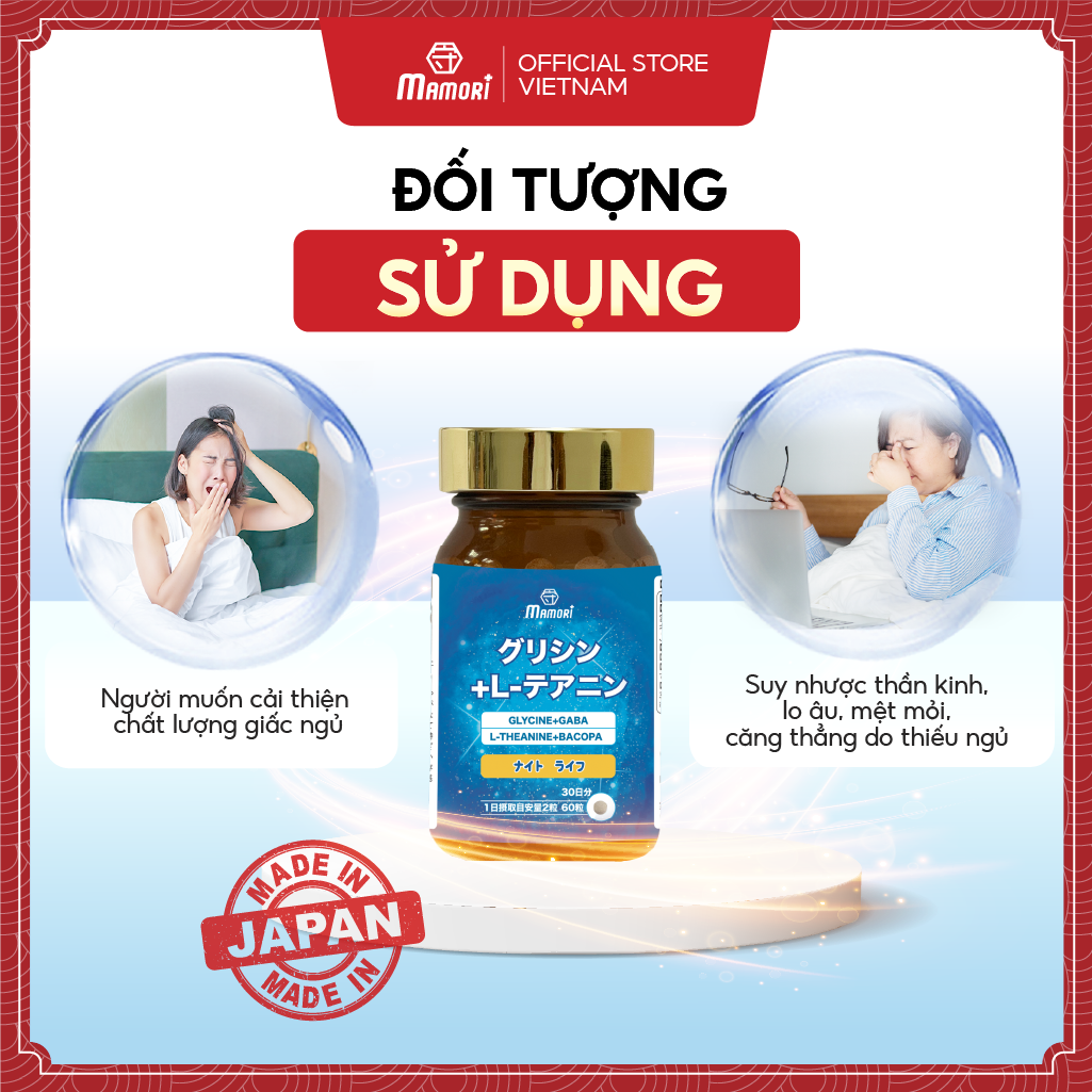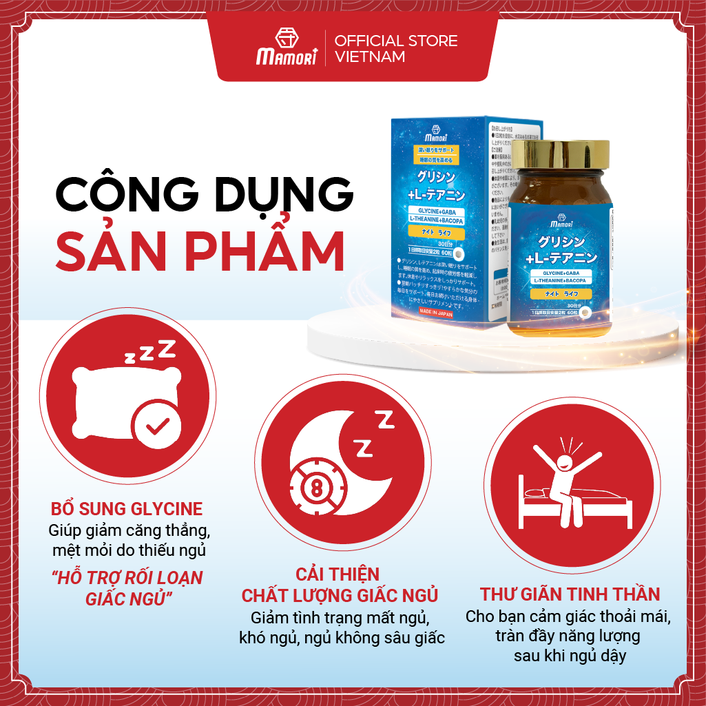 ✨Viên uống MAMORI Glycine L-Theanine giúp giảm căng thẳng - stress, Hỗ trợ ngủ ngon, ngủ sâu giấc (60 Viên)